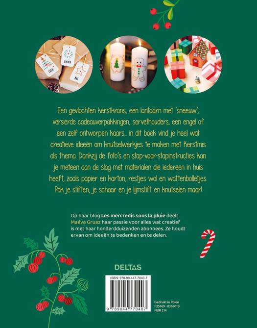 Kerstmis! In dit prachtige boek vind je een heleboel creatieve ideeën voor knutselwerkjes rond dit thema. Dankzij de foto's en stap-voor-stapinstructies kan je meteen aan de slag met materialen die iedereen in huis heeft, zoals papier en karton, restjes wol en wattenbolletjes. Pak je stiften, je schaar en je lijmstift en knutselen maar! Kies je een gevlochten kerstkrans, een lantaarn met 'sneeuw', versierde cadeauverpakkingen, servethouders, een engel of een zelf ontworpen kaars?