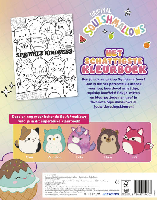 Ben jij ook zo gek op Squishmallows? Dan is dit officiële Squishmallows kleurboek boordevol schattige, squishy knuffels perfect voor jou! Pak je stiften en kleurpotloden en geef je favoriete Squishmallows al jouw lievelingskleuren!