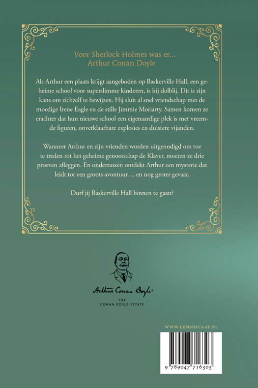 Als de jonge Arthur Conan Doyle een plaats krijgt aangeboden op Baskerville Hall, een geheime school voor buitengewoon begaafde kinderen, is hij dolblij. Dit is zijn kans om het tij te keren voor zijn familie. Hij sluit al snel vriendschap met de moedige Irene Eagle en de slimme Jimmie Moriarty. Samen komen ze erachter dat hun nieuwe school een eigenaardige plek is met scheve torens, onverklaarbare explosies en uitgestorven vogels.
