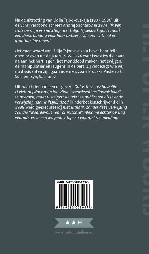 Na als student in de jaren twintig van de vorige eeuw te zijn gearresteerd en verbannen werkte Lidija Tsjoekovskaja enige jaren als redacteur bij een uitgeverij van kinderboeken. Naar aanleiding van de arrestatie en – naar later bleek – moord op haar echtgenoot schreef zij midden in die tijd van repressie de beklemmende roman Sofia Petrovna/Het verlaten huis. Nadat Tsjoekovskaja het haar had voorgelezen zei de dichter Anna Achmatova hierover: ‘Ieder woord ervan is waar.’ Haar tweede roman, Duik in de diepte, is gesitueerd in 1949 toen een nieuwe golf van vervolging en antisemitisme werd ingezet. Na het einde van de dooi onder Chroestsjov verzette zij zich openlijk tegen het opnieuw intredende repressieve klimaat van leugenachtigheid, manipulatie en zwijgen. In 1974 werd zij uit de Schrijversbond gezet. De transcriptie van haar verdedigingsrede is in het boek opgenomen. Wie is deze vrouw, door Solzjenitsyn omschreven als ‘een sieraad voor de Sovjetliteratuur’? De frisheid, kracht en de literaire kwaliteit van haar open brieven rechtvaardigen deze vertaling en publicatie, en daarmee de hernieuwde aandacht voor haar werk. Enkele fragmenten uit Women’s Works in Stalin’s Time van Beth Holmgren duiden vanuit een feministisch perspectief het belang, de werkwijze en de bijzondere plaats die vrouwen, zoals Lidija Tsjoekovskaja, in de Sovjetliteratuur innemen.