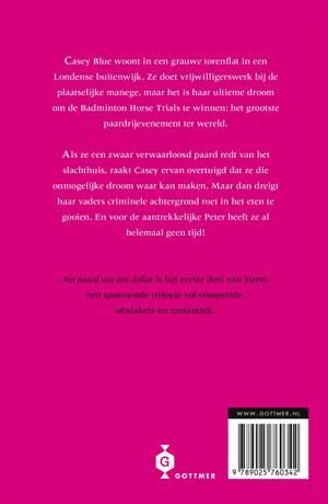 'Het paard van een dollar' is het eerste deel in de Storm-serie van Lauren St. John - een serie paardenboeken voor lezers vanaf 11 jaar. Casey Blue woont in een grauwe torenflat in een Londense buitenwijk. Ze doet vrijwilligerswerk bij de plaatselijke manege, maar het is haar ultieme droom om de Badminton Horse Trials te winnen, het grootste paardrij-evenement ter wereld. Als ze een zwaar verwaarloosd paard redt van het slachthuis, raakt ze ervan overtuigd dat ze die onmogelijke droom waar kan maken. Haar vaders criminele achtergrond dreigt echter roet in het eten te gooien. En voor een jongen met ogen om in te verdrinken heeft ze al helemaal geen tijd! 'Het paard van een dollar' is het eerste deel in de trilogie 'Storm' van Lauren St John, een serie paardenboeken voor lezers vanaf 11 jaar. Spannend en goed geschreven, en vanwege de universele thema's als liefde, vriendschap, familie en doorzettingsvermogen óók leuk voor niet-paardenliefhebbers.