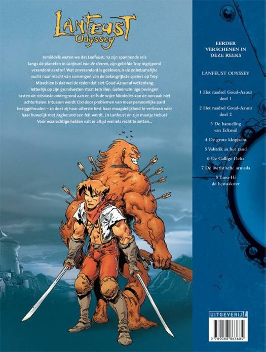 Inmiddels weten we dat Lanfeust, na zijn spannende reis langs de planeten in Lanfeust van de sterren, zijn geliefde Troy ingrijpend veranderd aantrof. Wat onveranderd is gebleven, is de onbetamelijke zucht naar macht van sommigen van de belangrijkste spelers op Troy. Misschien is dat wel de reden dat slot Goud-Azuur al wekenlang letterlijk op zijn grondvesten staat te trillen. Geheimzinnige bevingen tasten de rotsvaste ondergrond aan en zelfs de wijze Nicoledes kan de oorzaak niet achterhalen. Intussen wordt Cixi door problemen van meer persoonlijke aard beziggehouden - zo doet zij haar uiterste best haar maagdelijkheid te verliezen voor haar huwelijk met Argherand een feit wordt. En Lanfeust en zijn maatje Hebus? Voor waarachtige helden valt er altijd wel iets recht te zetten...