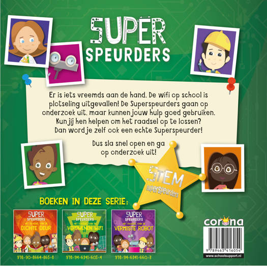 Er is iets vreemds aan de hand. De wifi op school is plotseling uitgevallen! De Superspeurders gaan op onderzoek uit, maar kunnen jouw hulp goed gebruiken. Kun jij hen helpen om het raadsel op te lossen? Dan word je zelf ook een echte Superspeurder! Dus sla snel open en ga op onderzoek uit!