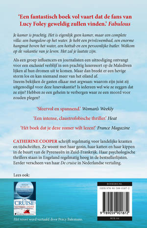 Catherine Cooperschrijft regelmatig voor landelijke kranten en tijdschriften. Ze woont met haar gezin, haar katten en haar kippen in de buurt van de Pyreneeën in Zuid-Frankrijk. Haar psychologische thrillers staan in Engeland regelmatig hoog in de bestsellerlijsten. Eerder verscheen van haar De cruise in Nederlandse vertaling.