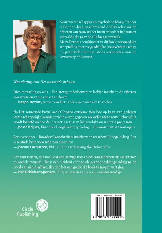 Neurowetenschappen en psycholoog Mary-Frances O’Connor deed baanbrekend onderzoek naar de effecten van rouw op het brein en op het lichaam en vertaalde dit naar de alledaagse praktijk. Mary-Frances combineert in dit boek persoonlijke storytelling met toegankelijke (neuro)wetenschap en praktische kennis. Ze is verbonden aan de University of Arizona.