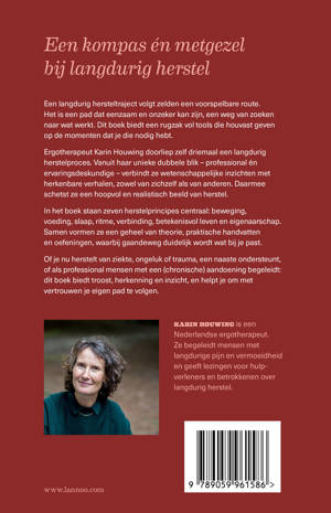 Een langdurig hersteltraject volgt zelden een voorspelbare route. Het is een pad dat eenzaam en onzeker kan zijn, een weg van zoeken naar wat werkt. Dit boek biedt een rugzak vol tools die houvast geven op de momenten dat je die nodig hebt. Ergotherapeut Karin Houwing doorliep zelf driemaal een langdurig herstelproces. Vanuit haar unieke dubbele blik - professional én ervaringsdeskundige - verbindt ze wetenschappelijke inzichten met herkenbare verhalen, zowel van zichzelf als van anderen. Daarmee schetst ze een hoopvol en realistisch beeld van herstel. In het boek staan zeven herstelprincipes centraal: beweging, voeding, slaap, ritme, verbinding, betekenisvol leven en eigenaarschap. Samen vormen ze een geheel van theorie, praktische handvatten en oefeningen, waarbij gaandeweg duidelijk wordt wat bij je past. Of je nu herstelt van ziekte, ongeluk of trauma, een naaste ondersteunt, of als professional mensen met een (chronische) aandoening begeleidt: dit boek biedt troost, herkenning en inzicht, en helpt je om met vertrouwen je eigen pad te volgen.