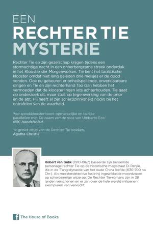 Rechter Tie en zijn gezelschap krijgen tijdens een stormachtige nacht in een onherbergzame streek onderdak in De Morgenwolken, een Taoïstisch klooster. Tie kent het klooster omdat niet lang geleden drie meisjes er de dood vonden. Ook nu gebeuren er onheilspellende, onverklaarbare dingen en Tie en zijn rechterhand Tao Gan hebben het vermoeden dat de kloosterlingen iets achterhouden. Tie gaat op onderzoek uit maar stuit op tegenwerking van de prior en de abt. Hij heeft al zijn scherpzinnigheid nodig bij het ontrafelen van de waarheid.