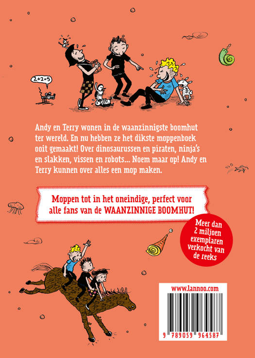 Andy en Terry wonen in de waanzinnigste boomhut ter wereld. En nu hebben ze het dikste moppenboek ooit gemaakt! Over dinosaurussen en piraten, ninja's en slakken, vissen en robots... Noem maar op! Andy en Terry kunnen over alles een mop maken.