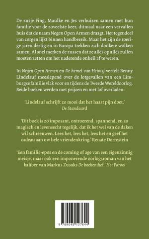 In Het tegendeel van zorgen zijn twee bekroonde en bejubelde romans gebundeld: Negen Open Armen en De hemel van Heivisj. Lindelauf vertelt daarin de geschiedenis van de zusjes Fing, Muulke en Jes Boon, die met hun vader, drie oudere broers en oma Mei een nieuw huis betrekken: ‘Het huis van de negen open armen’. Een vreemd huis, dat wel vervloekt lijkt, want al gauw stapelt zich ramp op ramp. Maar er tekenen zich nog grotere gevaren af. Het zijn de jaren dertig en oorlog is onafwendbaar. De zussen proberen hun leven zo goed mogelijk voort te zetten maar het noodlot treft ook de familie Boon.