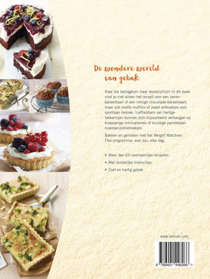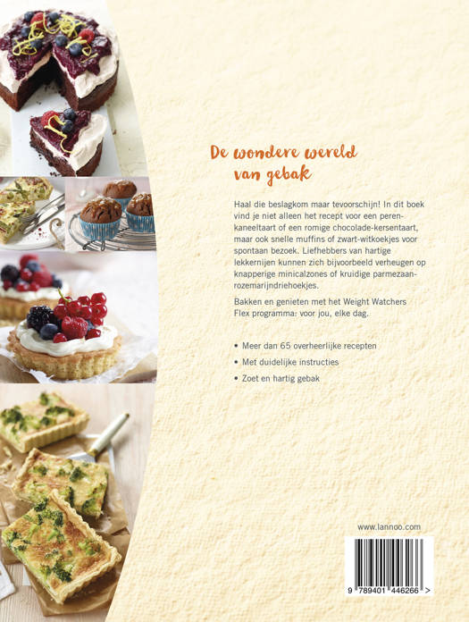 Haal die beslagkom maar tevoorschijn! In dit boek vind je niet alleen het recept voor een perenkaneeltaart of een romige chocolade-kersentaart, maar ook snelle muffins of zwart-witkoekjes voor spontaan bezoek. Liefhebbers van hartige lekkernijen kunnen zich bijvoorbeeld verheugen op knapperige minicalzones of kruidige parmezaanrozemarijndriehoekjes. Bakken en genieten met het Weight Watchers Flex programma: voor jou, elke dag.