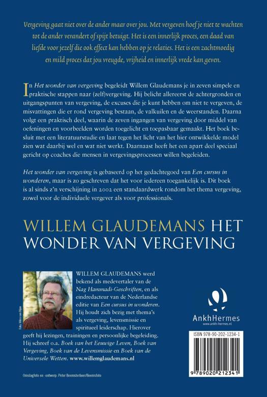 Willem Glaudemans schreef met Het wonder van vergeving een diepgravend en succesvol studieboek rond het thema vergeving. Hij laat je in zeven stappen dichter komen bij vergeving van jezelf en anderen. Glaudemans belicht hierbij alle achtergronden en uitgangspunten van vergeving, de excuses die je kunt hebben om niet te vergeven, de misvattingen die er rond vergeving bestaan en de valkuilen. Het boek is gebaseerd op een uitgebreide studie van het onderwerp en heeft Een cursus in wonderen als inspiratiebron.