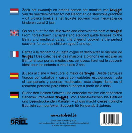 In Brugge hoort het zwaantje er echt bij. Het is een prachtig symbool van de stad. In dit stevige kartonboekje neem je je peuter mee op avontuur met het zwaantje langs de mooiste plekjes van Brugge.