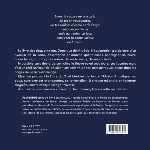Le livre des cinquante ans. Depuis un demi-siècle, fréquentation passionnée d’un riverain de la Loire, observation et marche quotidiennes, imprégnation, heure après heure, saison après saison, de ses humeurs, de ses couleurs. Impossible sans doute de connaître le fleuve royal sous toutes ses facettes mais c’est un réel bonheur de dévoiler une palette de ses incessantes variations dans les pages de ce livre-hommage. Que l’on parcourt la Loire du Mont Gerbier de Jonc à l’Océan Atlantique, ses eaux, constamment changeantes, se renouvellent à chaque méandre et honorent magnifiquement chaque village traversé. À la Pointe-Bouchemaine comme partout ailleurs, Loire exalte ses féeries.