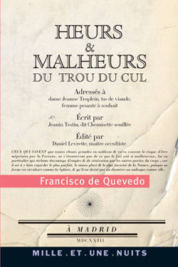 Le plus grand poète espagnol du Siècle d'or, Francisco de Quevedo (1580-1645), est un satiriste de génie. Homme de cour sous Philippe II, il multiplie les provocations et tourne en dérision les travers de ses contemporains. Tombé en disgrâce, il profite sans doute de l'exil qui lui est imposé pour écrire ces Heurs et malheurs du trou du cul (1622-1623) d'inspiration rabelaisienne, dans une langue inventive. Jamais publié de son vivant, ce texte blasphématoire et scatologique circulait longtemps sous le manteau sans nom d'auteur.