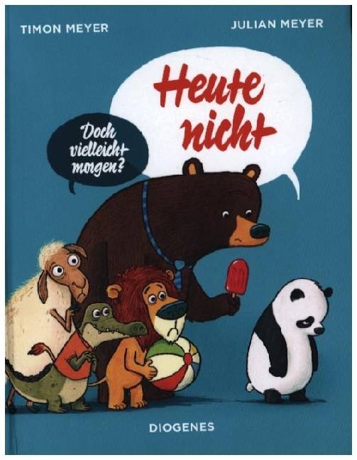 Wer kennt das nicht: Das Lieblingsshirt ist in der Wäsche, Mittagsschlaf, wenns grad am schönsten ist, und ungeliebter Käse auf den geliebten Nudeln. Die Gründe, warum Kinder von einer Sekunde zur anderen zu Tode betrübt sind, sind zahllos. So geht es auch den Tieren in Timon und Julian Meyers wunderbarem Kinderbuch 'Heute nicht'. Doch weil kein Kummer ewig währt und das nächste Abenteuer schon wartet, ist bald alles wieder gut.