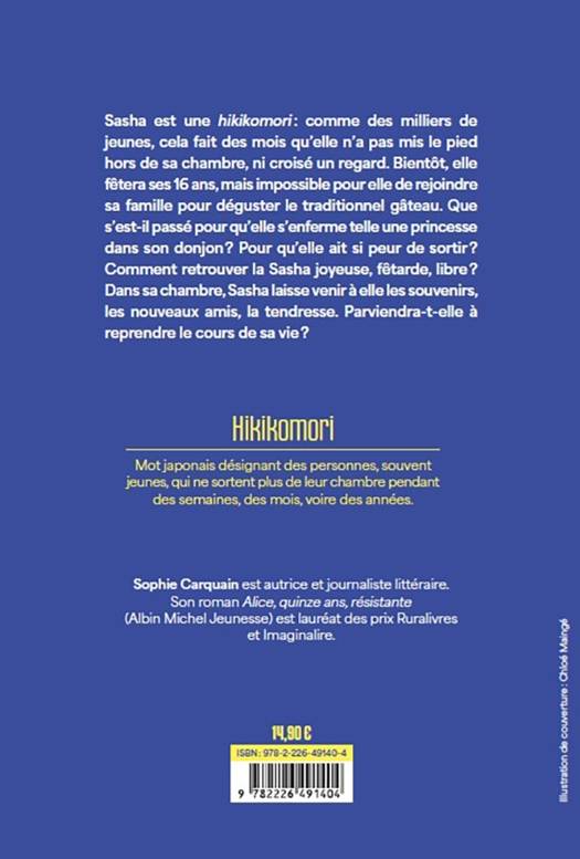 Sasha est une hikikomori : comme des milliers de jeunes, cela fait des mois qu'elle n'a pas mis le pied hors de sa chambre, ni croisé un regard. Bientôt, elle fêtera ses 16 ans, mais impossible pour elle de rejoindre sa famille pour déguster le traditionnel gâteau. Que s'est-il passé pour qu'elle s'enferme telle une princesse dans son donjon ? Pour qu'elle ait si peur de sortir ? Comment retrouver la Sasha joyeuse, fêtarde, libre ? Dans sa chambre, Sasha laisse venir à elle les souvenirs, les nouveaux amis, la tendresse. Parviendra-t-elle à reprendre le cours de sa vie ?