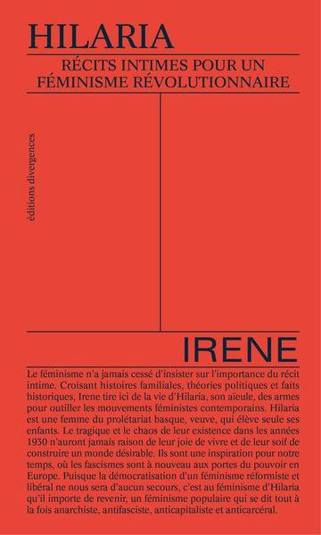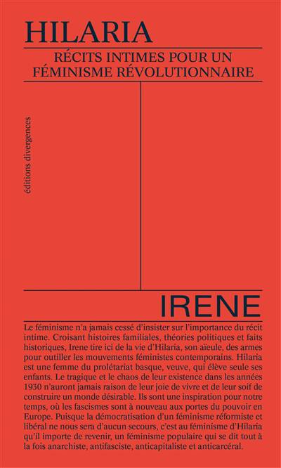 Le féminisme n'a jamais cessé d'insister sur l'importance du récit intime. Croisant histoires familiales, théories politiques et faits historiques, Irene tire ici de la vie d'Hilaria, son aïeule, des armes pour outiller les mouvements féministes contemporains. Hilaria est une femme du prolétariat basque, veuve, qui élève seule ses enfants. Le tragique et le chaos de leur existence dans les années 1930 n'auront jamais raison de leur joie de vivre et de leur soif de construire un monde désirable. Ils sont une inspiration pour notre temps, où les fascismes sont à nouveau aux portes du pouvoir en Europe. Puisque la démocratisation d'un féminisme réformiste et libéral ne nous sera d'aucun secours, c'est au féminisme d'Hilaria qu'il importe de revenir, un féminisme populaire qui se dit tout à la fois anarchiste, antifasciste, anticapitaliste et anticarcéral.
