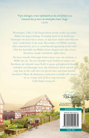 Marie Lamballe is het pseudoniem van een Duitse bestsellerauteur die wereldwijd bijna zes miljoen boeken heeft verkocht Wiesbaden, 1965. Café Engel bloeit steeds verder op onder Hildes bevlogen leiding en ze moet al snel op zoek naar nieuw personeel. Ze neemt de Italiaanse Giuseppe aan maar stuit op weerstand bij haar ouders, die zo'n 'zuiderling' niet vertrouwen. Het huwelijk van Hildes broer Willi met Swetlana maakt turbulente tijden door als hij zich inlaat met een van zijn mede-actrices. Op een dag is Hilde alle drama zat en besluit ze samen met Swetlana naar Italië te gaan, geïnspireerd door de verhalen van Giuseppe over zijn thuisland. Eerst aarzelt ze nog: kan ze het café wel met een gerust hart aan haar familie overlaten? Maar de Italiaanse zomerzon brandt alle twijfels weg en dat zal niet zonder gevolgen blijven. In de pers 'Fijne dialogen, mooi tijdsbeeld en de schrijfstijl is zo vloeiend dat je door de bladzijdes heen vliegt. Gelukkig is dit pas het eerste deel van de Café Engel-serie.'**** Libelle 'Een pareltje vol emotie.' De Telegraaf, VROUW 'Een zeer spannend en ontroerend verhaal.' Het Parool