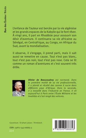 L'enfance de l'auteur est bercée par la vie algéroise et les grands espaces de la Kabylie qui le font rêver. A vingt ans, il part en Rhodésie pour assouvir son désir d'aventure. Il continuera sa vie africaine au Sénégal, en Centrafrique, au Congo, en Afrique du Sud, avant la mondialisation. Il observe, il s'engage, il prend parti, mais il sait aussi se remettre en cause. Cela se lit comme un roman d'aventures et c'est souvent très drôle.