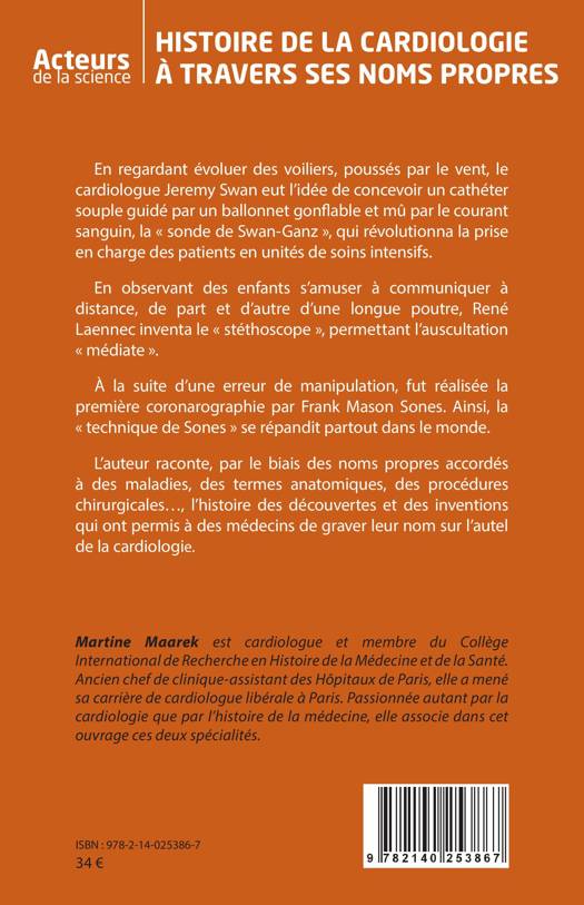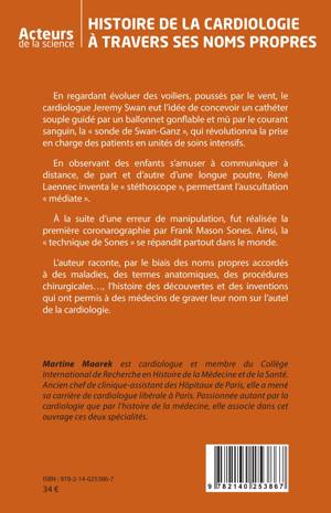 En regardant évoluer des voiliers, poussés par le vent, le cardiologue Jeremy Swan eut l'idée de concevoir un cathéter souple guidé par un ballonnet gonflable et mû par le courant sanguin, la « sonde de Swan-Ganz », qui révolutionna la prise en charge des patients en unités de soins intensifs. En observant des enfants s'amuser à communiquer à distance, de part et d'autre d'une longue poutre, René Laennec inventa le « stéthoscope », permettant l'auscultation « médiate ».À la suite d'une erreur de manipulation, fut réalisée la première coronarographie par Frank Mason Sones. Ainsi, la « technique de Sones » se répandit partout dans le monde. L'auteur raconte, par le biais des noms propres accordés à des maladies, des termes anatomiques, des procédures chirurgicales , l'histoire des découvertes et des inventions qui ont permis à des médecins de graver leur nom sur l'autel de la cardiologie.