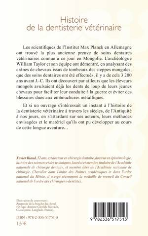 Les scientifiques de l'Institut Max Planck en Allemagne ont trouvé la plus ancienne preuve de soins dentaires vétérinaires connue à ce jour en Mongolie. L'archéologue William Taylor et son équipe ont démontré, en analysant des crânes de chevaux issus de tombeaux des steppes mongoles, que des soins dentaires ont été effectués, il y a de cela 3 200 ans avant J.-C. Ils ont découvert par ailleurs que les éleveurs mongols avulsaient déjà les dents de loup de leurs jeunes chevaux pour faciliter leur conduite à la guerre et éviter des blessures dues aux embouchures métalliques. Et si un ouvrage s'intéressait un instant à l'histoire de la dentisterie vétérinaire à travers les siècles, de l'Antiquité à nos jours, en s'attardant sur ses acteurs, leurs méthodes envisagées et le matériel qu'ils ont pu développer au cours de cette longue aventure ?