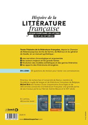 Toute l’histoire de la littérature française, depuis la Chanson de Roland jusqu’aux écrits de Sartre, de Malraux et du général de Gaulle, en un manuel synthétique :