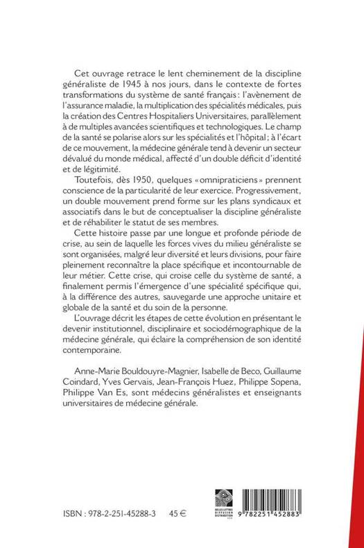 L’ouvrage décrit les étapes de cette évolution en présentant le devenir institutionnel, disciplinaire et sociodémographique de la médecine générale, qui éclaire la compréhension de son identité contemporaine.