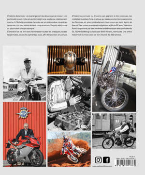 connues ou d’autres qui gagnent à être connues, les multiples facettes d’une pratique qui passionne les hommes comme les femmes, et plus généralement tous ceux qui sont épris de liberté. Des toutes premières mobylettes au MotoGP avec Valentino Rossi, en passant par des modèles emblématiques tels que la Honda GL 1500 Goldwing ou la Ducati 900 Mostro, retrouvez une brève histoire de la moto dans ce livre illustré de 250 photos.