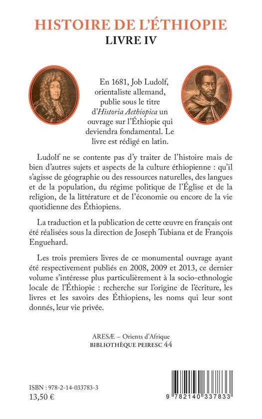 En 1681, Job Ludolf, orientaliste allemand, publie sous le titre d'Historia Aethiopica un ouvrage sur l'Éthiopie qui deviendra fondamental. Le livre est rédigé en latin. Ludolf ne se contente pas d'y traiter de l'histoire mais de bien d'autres sujets et aspects de la culture éthiopienne : qu'il s'agisse de géographie ou des ressources naturelles, des langues et de la population, du régime politique de l'Église et de la religion, de la littérature et de l'économie ou encore de la vie quotidienne des Éthiopiens. Ce dernier volume s'intéresse plus particulièrement à la socio-ethnologie locale de l'Éthiopie : recherche sur l'origine de l'écriture, les livres et les savoirs des Éthiopiens, les noms qui leur sont donnés, leur vie privée.