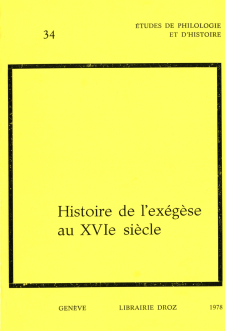 Etudes réalisées par : D. Ausburger, I. Backus, G. Bedouelle, C. Bené, H. Feld, A. Godin, G. Hobbs, J.C. Margolin, M. Screech, etc. sur : Calvin, Aristote, Lefèvre, Erasme, Origène, Bucer, Bovelles, etc...