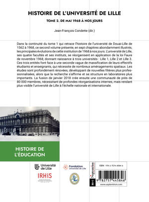 L’ouvrage, illustré de nombreux documents, propose en sept chapitres, une synthèse des grandes étapes du développement des universités de Lille (Lille I, 2 et 3), nées des suites des mobilisations de mai-juin 1968, puis de la nouvelle université de Lille née en 2018 de la fusion des trois entités antérieures. Il décrit son histoire en s’intéressant aux structures, aux enseignant-e-s et aux étudiant-e-s ainsi qu’aux formations et à la recherche qui se diversifient tout en se professionnalisant.