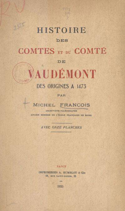 Histoire des comtes et du comté de Vaudémont, des origines à 1473 EBOOK