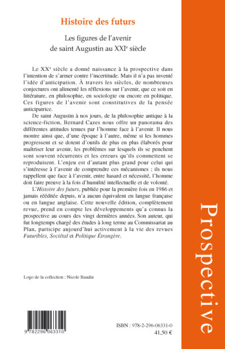 De saint Augustin à nos jours, de la philosophie antique à la science-fiction, Bernard Cazes nous offre un panorama des différentes attitudes tenues par l'homme face à l'avenir. Il nous montre que, même si les hommes progressent et se dotent d'outils de plus en plus élaborés pour maîtriser leur avenir, les problèmes sur lesquels ils se penchent sont souvent récurrents et les erreurs qu'ils commettent se reproduisent. Publié pour une première fois en 1986, cette nouvelle édition complètement revue prend en compte les développements que la prospective a connus ces vingt dernières années.