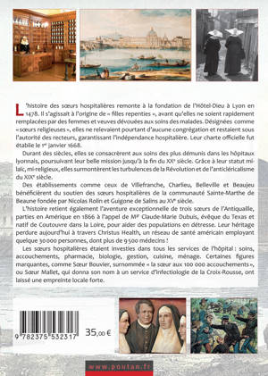 L’histoire des sœurs hospitalières remonte à la fondation de l’Hôtel-Dieu à Lyon en 1478. Il s’agissait d’abord de « filles repenties », avant qu’elles ne soient rapidement remplacées par des femmes et veuves dévouées aux soins des malades. Désignées comme « sœurs religieuses », elles ne relevaient pourtant d’aucune congrégation et restaient sous l’autorité des recteurs, garantissant l’indépendance hospitalière. Leur charte officielle fut établie le 1er janvier 1668. Durant des siècles, elles se consacrèrent aux soins des plus démunis dans les hôpitaux lyonnais, poursuivant leur belle mission jusqu’à la fin du XXe siècle. Grâce à leur statut mi-laïc, mi-religieux, elles surmontèrent les turbulences de la Révolution et de l’anticléricalisme du XIXe siècle.