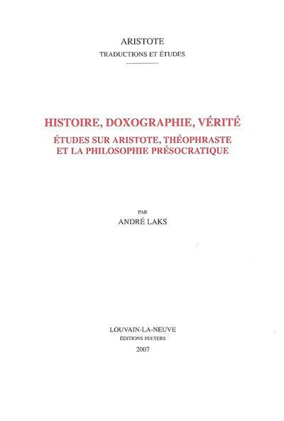 Les douze chapitres de ce livre tournent autour de deux poles, Aristote d'une part, la doxographie de l'autre. La doxographie, genre philosophiquement et historiographiquement sous-evalue, se situe au croisement de questions essentielles tant pour la reconstruction technique des systemes perdus (notamment presocratiques), que pour la question generale de la lecture des textes philosophiques. Elle constitue un fascinant depot laisse par un double questionnement fondamental, en direction de l'histoire d'une part (que fut-il dit ?), et de la verite d'autre part (que doit-on dire ?). Les deux points de vue sont irreductibles l'un a l'autre; tot ou tard, ils entrent en conflit, plus ou moins vivement, mais sans qu'une ultime resorption soit possible. Cette tension, fructueuse intellectuellement, pose aussi des problemes techniques, quand il s'agit d'exploiter le materiel transmis. Le livre explore cette configuration a differents niveaux, a propos des Presocratiques (avec plusieurs etudes sur la lecture qu'Aristote, Theophraste, et les Placita faisaient de Thales, de Parmenides, ou d'Anaxagore), a propos d'Aristote lui-meme, lu par Theophraste, a propos enfin des orientations de l'historiographie moderne de la philosophie ancienne. Deux chapitres d'inspiration distincte sont specifiquement consacres a la theorie aristotelicienne de la metaphore et au chapitre 7 du livre Lambda de la Metaphysique.