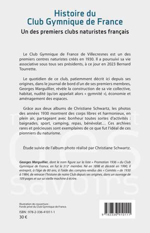 Le Club Gymnique de France de Villecresnes est un des premiers centres naturistes créés en 1930. Il a poursuivi sa vie associative sous tous ses présidents, à ce jour en 2023 Bernard Tourrette. Le quotidien de ce club, patiemment décrit ici depuis ses origines, dans le journal de bord d'un de ses premiers membres, Georges Marguillier, révèle la construction de sa vie collective, habitat, nudité (qu'on appelait alors gymnité ), économie et aménagement des espaces. Grâce aux deux albums de Christiane Schwartz, les photos des années 1930 montrent des corps libres et harmonieux, en plein air, partageant avec bonheur toutes sortes d'activités: baignades, sport, camping, repas, bénévolat... Ces archives rares et précieuses sont exemplaires de ce que fut l'idéal de ces pionniers du naturisme.