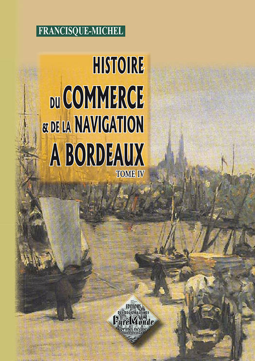 L’histoire du commerce et de la navigation à Bordeaux fut publié en 1867... et oublié depuis lors. Cet ouvrage de plus de 1000 pages (dans son édition originale) fait un point très détaillé de ce que l’on sait du florissant commerce des vins bordelais au Moyen-Age, mais également des relations parfois orageuses entre marins de diverses nationalités, de tout ce qui touche à la navigation, à ses mentalités, aux règlements qui y affairent, etc. A travers les archives gasconnes (les fameux Rôles gascons et bien d’autres archives encore), Francisque-Michel (1809-1887), médiéviste, philologue, professeur à la faculté des lettres de Bordeaux, reconstitue l’histoire économique et maritime de Bordeaux, complément tout-à-fait indispensable et passionnant de l’histoire politique, elle, mieux connue à ce jour. Publié dans une nouvelle édition qui comprend 4 tomes (dont le quatrième traite des marchandises et denrées commercées à Bordeaux, des courtiers et juifs commerçants de Bordeaux jusqu’au XVIIIe siècle).