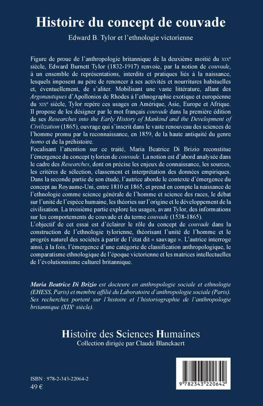 Figure de proue de l'anthropologie britannique de la deuxième moitié du XIXe siècle, Edward BurnettTylor (1832-1917) renvoie, par la notion de couvade, à un ensemble de représentations, interdits et pratiques liés à la naissance, lesquels imposent au père de renoncer à ses activités et nourritures habituelles et, éventuellement, de s'aliter. Mobilisant une vaste littérature, allant des Argonautiques d'Apollonios de Rhodes à l'ethnographie exotique et européenne du XIXe siècle, Tylor repère ces usages en Amérique, Asie, Europe et Afrique. Il propose de les désigner par le mot français couvade dans la première édition de ses Researches into the Early History of Mankind and the Development of Civilization (1865), ouvrage qui s'inscrit dans le vaste renouveau des sciences de l'homme promu par la reconnaissance, en 1859, de la haute antiquité du genre homo et de la préhistoire.