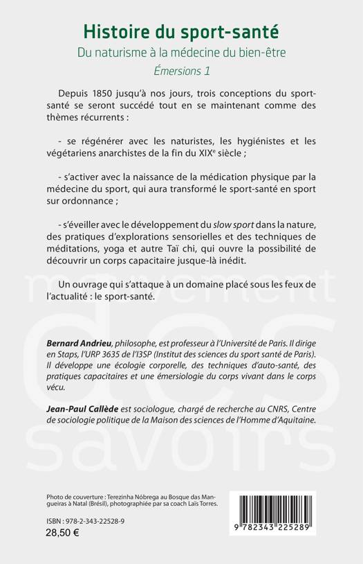 Depuis 1850 jusqu’à nos jours, trois conceptions du sport-santé se seront succédé tout en se maintenant comme des thèmes récurrents : - se régénérer avec les naturistes, les hygiénistes et les végétariens anarchistes de la fin du XIXe siècle ;- s’activer avec la naissance de la médication physique par la médecine du sport, qui aura transformé le sport-santé en sport sur ordonnance ; - s’éveiller avec le développement du slow sport dans la nature, des pratiques d’explorations sensorielles comme le yoga qui ouvre la possibilité de découvrir un corps capacitaire jusque-là inédit. Un ouvrage qui s’attaque à un domaine placé sous les feux de l’actualité : le sport-santé.