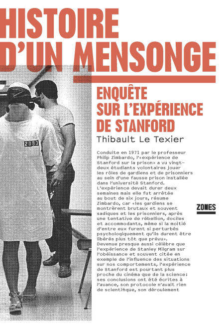De renommée équivalente à celle de Milgram, l'" expérience de Stanford sur la prison " demeure pourtant l'un des meilleurs exemples de mise en scène scientifique. Rassemblant archives et entretiens inédits, Thibault Le Texier mène une enquête haletante sur l'une des plus grandes supercheries intellectuelles du XX e siècle. Conduite en 1971 par le professeur Philip Zimbardo, l'" expérience de Stanford sur la prison " a vu vingt-deux étudiants volontaires jouer les rôles de gardiens et de prisonniers au sein d'une fausse prison installée dans l'université Stanford. L'expérience devait durer deux semaines mais elle fut arrêtée au bout de six jours, résume Zimbardo, car " les gardiens se montrèrent brutaux et souvent sadiques et les prisonniers, après une tentative de rébellion, dociles et accommodants, même si la moitié d'entre eux furent si perturbés psychologiquement qu'ils durent être libérés plus tôt que prévu ". Devenue presque aussi célèbre que l'expérience de Stanley Milgram sur l'obéissance et souvent citée en exemple de l'influence des situations sur nos comportements, l'expérience de Stanford est pourtant plus proche du cinéma que de la science : ses conclusions ont été écrites à l'avance, son protocole n'avait rien de scientifique, son déroulement a été constamment manipulé et ses résultats ont été interprétés de manière biaisée. Rassemblant archives et entretiens inédits, Thibault Le Texier mène une enquête haletante sur l'une des plus grandes supercheries scientifiques du XXe siècle, entre rivalités académiques, contre-culture et déploiement du complexe militaro-industrialo-universitaire.