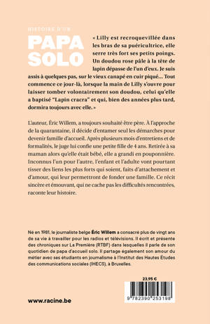 L'auteur, Éric Willem, a toujours souhaité être père. À l'approche de la quarantaine, il décide d'entamer seul les démarches pour devenir famille d'accueil. Après plusieurs mois d'entretiens et de formalités, le juge lui confie une petite fille de 4 ans. Retirée à sa maman alors qu'elle était bébé, elle a grandi en pouponnière. Inconnus l'un pour l'autre, l'enfant et l'adulte vont pourtant tisser des liens les plus forts qui soient, faits d'attachement et d'amour, qui leur permettront de fonder une famille. Ce récit sincère et émouvant, qui ne cache pas les difficultés rencontrées, raconte leur histoire.