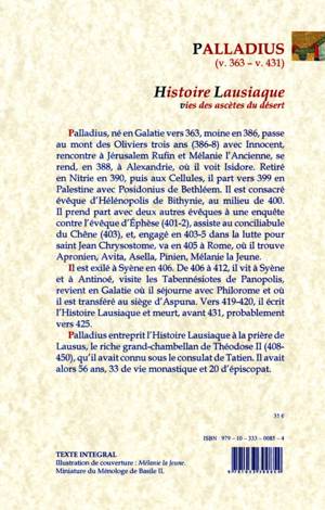 Palladius entreprit l'Histoire Lausiaque à la prière de Lausus, le riche grand-chambellan de Théodose II (408- 450), qu'il avait connu sous le consulat de Tatien. Il avait alors 56 ans, 33 de vie monastique et 20 d'épiscopat.