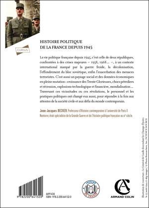 La vie politique française depuis 1945, c’est celle de deux républiques, confrontées à des crises majeures – 1958, 1968… –, à un contexte international marqué par la guerre froide, la décolonisation, l’effondrement du bloc soviétique, enfin l’exacerbation des menaces terroristes. C’est aussi un paysage social et des données économiques en pleine mutation : croissance des Trente Glorieuses, chocs pétroliers et récession, explosions technologique et financière, mondialisation… Traversant ces vicissitudes ou ces révolutions, le personnel et les pratiques politiques ont changé eux aussi, pour répondre à la fois aux attentes de la société civile et aux défis du monde contemporain.