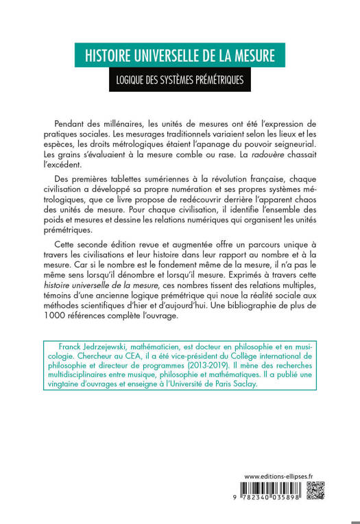 Cette seconde édition revue et augmentée offre un parcours unique à travers les civilisations et leur histoire dans leur rapport au nombre et à la mesure. Car si le nombre est le fondement même de la mesure, il n'a pas le même sens lorsqu'il dénombre et lorsqu'il mesure. Exprimés à travers cette histoire universelle de la mesure, ces nombres tissent des relations multiples, témoins d‘une ancienne logique prémétrique qui noue la réalité sociale aux méthodes scientifiques d'hier et d'aujourd'hui. Une bibliographie de plus de 1000 références complète l’ouvrage.