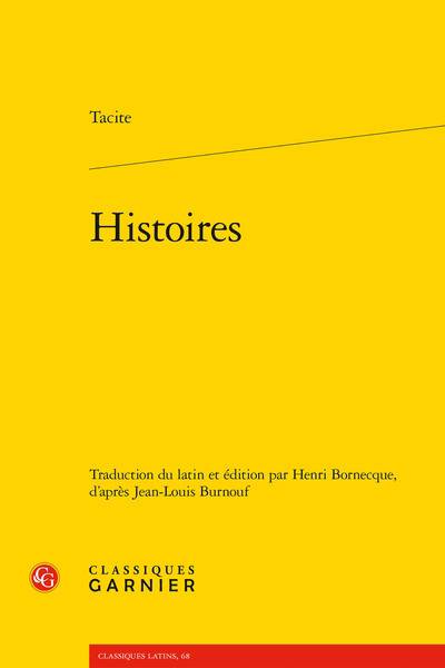 Proche de Pline le Jeune, Tacite est l'une des grandes figures de la vie littéraire et intellectuelle des Ier et IIe siècles de notre ère. Les Histoires, du moins les livres qui nous sont parvenus, s'intéressent à la première crise majeure de la Rome impériale. Avec la mort de Néron en 68, la dynastie des Julio-claudiens, au pouvoir depuis l'avènement d'Auguste, disparaît et Rome plonge dans une phase d'incertitude. En une année, trois empereurs se succèdent et s'affrontent avant que Vespasien ne parvienne à s'imposer. Contemporain de ces événements graves qui, pour la première fois depuis la fin de la République, ressuscitent le spectre des guerres civiles, Tacite analyse ce moment où se joue l'avenir de Rome et du régime impérial.