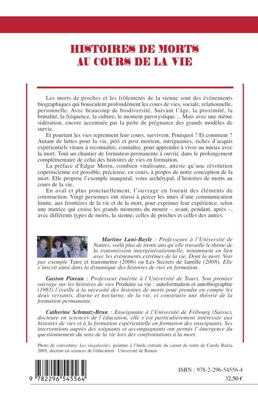 Les morts de proches et les frôlements de la sienne sont des événements biographiques qui bousculent profondément les cours de vies, sociale, relationnelle, personnelle. Et pourtant les vies reprennent leur cours, survivent. Pourquoi ? Et comment ? Autant de luttes pour la vie, péri et post mortem, intrigantes, riches d'acquis expérientiels vitaux à reconnaître, connaître, pour apprendre à vivre au mieux avec la mort. Tout un chantier de formation permanente à ouvrir, dans le prolongement complémentaire de celui des histoires de vies en formation.