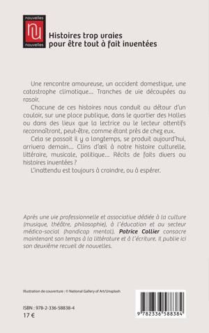 Une rencontre amoureuse, un accident domestique, une catastrophe climatique... Tranches de vie découpées au rasoir. Chacune de ces histoires nous conduit au détour d'un couloir, sur une place publique, dans le quartier des Halles ou dans des lieux que la lectrice ou le lecteur attentifs reconnaîtront, peut-être, comme étant près de chez eux. Cela se passait il y a longtemps, se produit aujourd'hui, arrivera demain... Clins d'oeil à notre histoire culturelle, littéraire, musicale, politique... Récits de faits divers ou histoires inventées ? L'inattendu est toujours à craindre, ou à espérer.