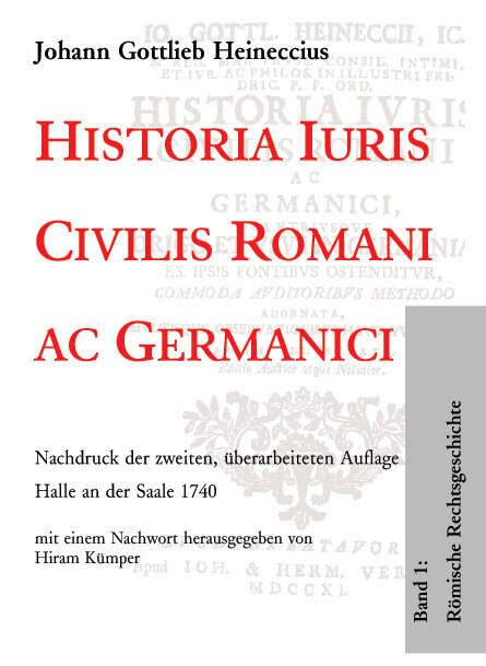 Im Urteil des berühmten Rechtshistorikers Roderich Stintzing war Johann Gottlieb Heineccius (1681-1741) "unter den deutschen Juristen des 18. Jahrhunderts vielleicht der bedeutendste, jedenfalls derjenige, welcher den umfassendsten Reichthum gelehrten, namentlich historischen Wissens mit gediegener philosophischer Bildung verband". Seine Historia Iuris Civils Romani Ac Germanici von 1733, die hier in der vom Verfasser noch selbst redigierten zweiten Auflage von 1740 neu gedruckt wird, muss zu den rechtshistorischen Standarddarstellungen des 18. Jahrhunderts und noch weit darüber hinaus gezählt werden. Sie wurde mehrfach überarbeitet und mit zusätzlichen Noten versehen. Das Handbuch wird damit zu einer wichtigen Quelle der Wissenschaftsgeschichte der in Deutschland gerade erst erblühten rechtsgeschichtlichen Forschung.