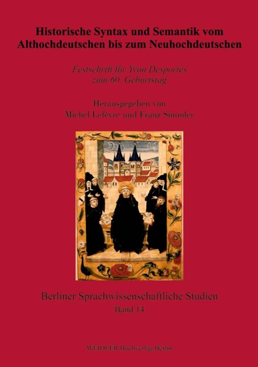 Vorwort. Von Michel Lefèvre und Franz SimmlerI. Althochdeutsche SprachperiodeRUDOLF SCHÜTZEICHEL: Der Sprache auf der SpurTHÉRESE ROBIN: Thanne bei OtfridANDREAS NIEVERGELT: Relativpronomen in den althochdeutschen GlossenREGINA FROSCHAUER / STEFANIE STRICKER: Huggen und denchen bei NotkerII. Mittelhochdeutsche SprachperiodeDELPHINE PASQUES: Syntaktische, semantische und pragmatische Kennzeichen der Belege von denne im Lucidarius (12. Jahrhundert)FRANZ SIMMLER: Evangelistare vom Ende des 13. und aus dem 14. Jahrhundert. Aufbauprinzipien und FunktionenIII. Frühneuhochdeutsche SprachperiodeODILE SCHNEIDER-MIZONY: Lässt sich ein stilistisches Modell des Renaissance-Romans zur Erklärung von syntaktischen Präferenzen anwenden?MAXI KRAUSE: Zu Othmar Nachtgalls Gantz Euangelisch hystori (1528)IV. Neuhochdeutsche SprachperiodeMICHEL LEFÈVRE: Dann in den deutschen Zeitungen des 17. Jahrhunderts. Zwischen Konnektor und Markierung der PolyphonieOLIVIER DUPLATRE: Zur semantischen Untersuchung des modernen dennJEAN HAUDRY: Fröhliche UrständRENE PERENNEC: Wortmigration und Resilienz: französisch/ englisch 'flair', deutsch 'Flair'V. Sprachperioden übergreifende UntersuchungenGABRIELE von OLBERG-HAVERKATE: Sprach- und Kulturgeschichte im Spiegel der Prosaweltchroniken des 13. bis 15. Jahrhunderts. Die Bezeichnungen für die WochentageCLAUDIA WICH-REIF: Krankheitsbezeichnungen in der Evangelientradition vom 14. bis zum 18. JahrhundertOLIVIER DUPLATRE / MICHEL LEFÈVRE / DELPHINE PASQUES / THÉRESE ROBIN: Bilanz zu thanne, denne, dann und dennNÁNDOR CSIKY / ALBRECHT GREULE: Wörterbücher als Quellen der historischen Valenz-Forschung am Beispiel des Verbs verzeihenJÓZEF WIKTOROWICZ: Die semantische Entwicklung der Partikel dennSchriftenverzeichnis Yvon Desportes