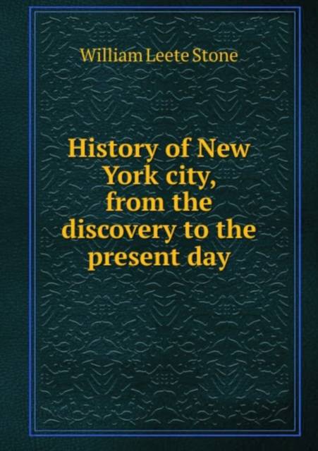 This book, "History of New York city, from the discovery to the present day", by William Leete Stone, is a replication. It has been restored by human beings, page by page, so that you may enjoy it in a form as close to the original as possible. This book was created using print-on-demand technology. Thank you for supporting classic literature.